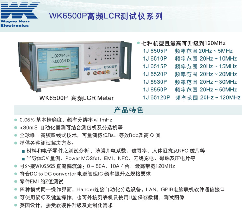 稳科wayne kerr WK6500P高频LCR测试仪详细资料