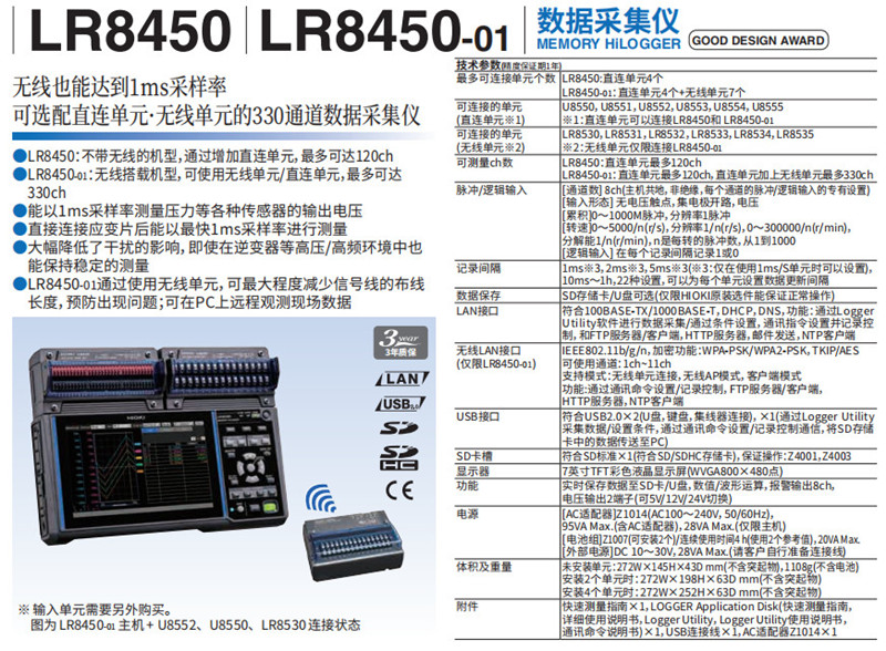 直连单元和无线单元,最多可达330通道的数据采集仪