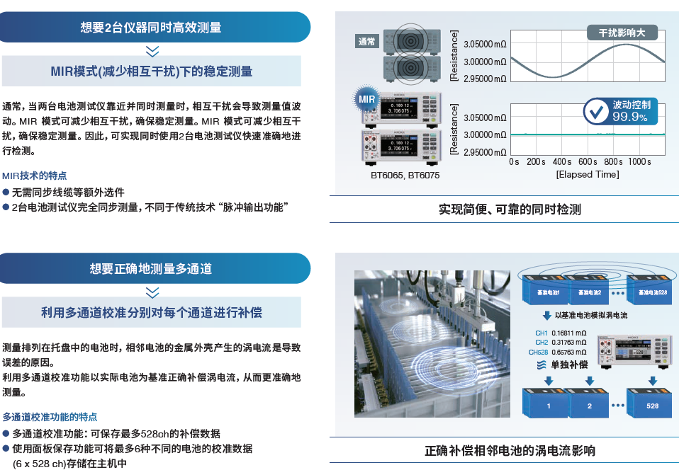 搭载减少相互干扰技术,两台设备可同时进行稳定测量的电池测试仪