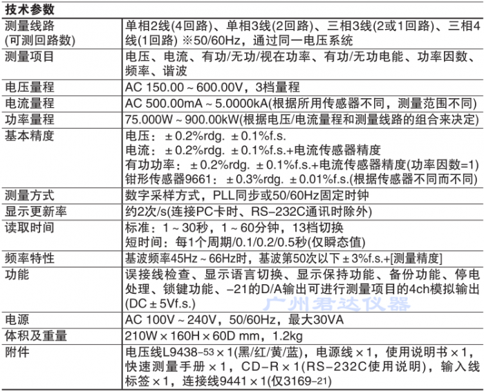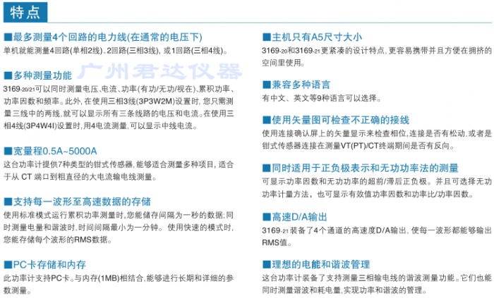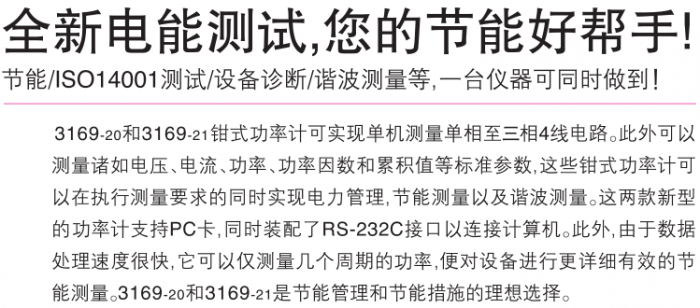 日置HIOKI3169-20钳式电力计产品技术资料